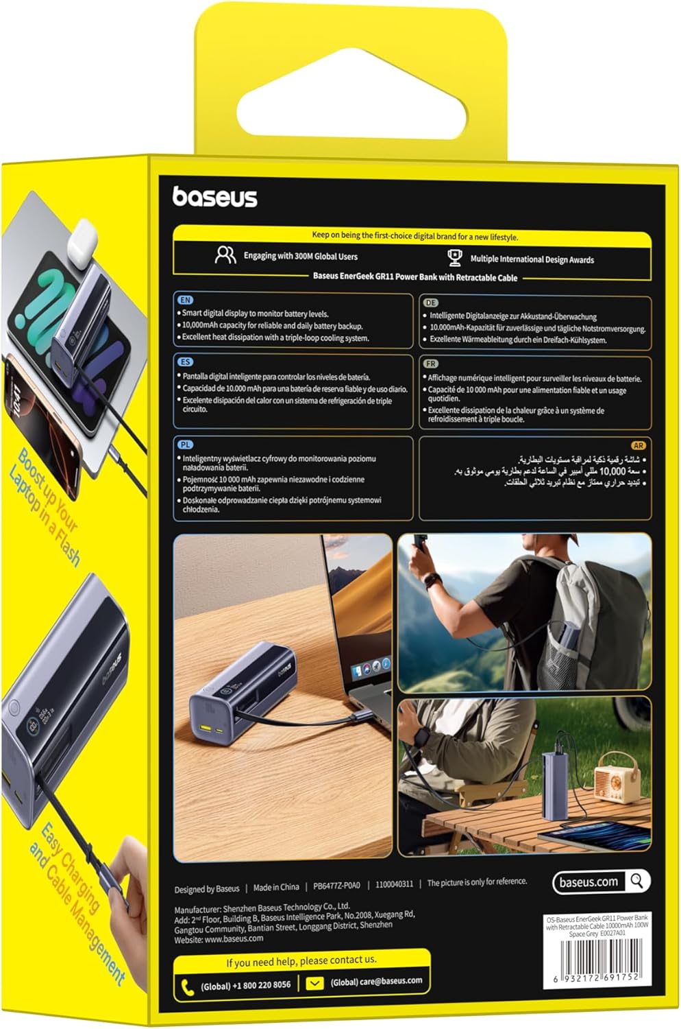 كابل قابل للسحب بطول 60 سم: يحتوي باور بانك بيسوس إنرجيك على كابل شحن مدمج قابل للسحب بطول 60 سم. الكابل المطور متين وسهل التخزين - لا مزيد من الكابلات المتشابكة.