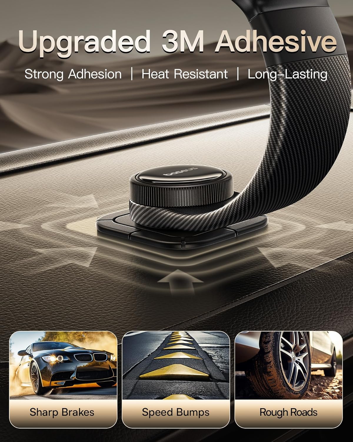 قاعدة لاصقة 3M: تثبيت قوي على لوحات القيادة أو أي سطح مستوٍ.