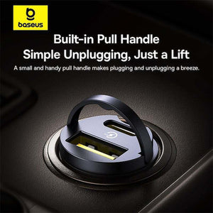 اشحن أثناء التنقل مع شاحن السيارة الصغير بيسوس تايني ستار، شاحن ثنائي المنافذ أنيق ومدمج مصمم للشحن السريع والفعال أثناء القيادة. مثالي للمسافرين العصريين، حيث يوفر شحناً سريعاً يصل إلى 30 واط عبر منافذ USB-A و USB-C.