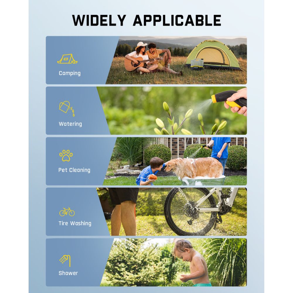 بفضل بطارية الليثيوم المدمجة عالية الأمان، وتصنيف IPX5 المقاوم للماء، وخزان المياه القابل للفصل بسعة 8 لتر، تساعدك على التخلص من قيود المياه والطاقة حيث لا يتطلب النظام المبتكر أي قوابس. مثالية لسيناريوهات مختلفة بما في ذلك تراسات التاون هاوس، الشقق، التخييم، وحتى تنظيف سلاسل الدراجات والإطارات.