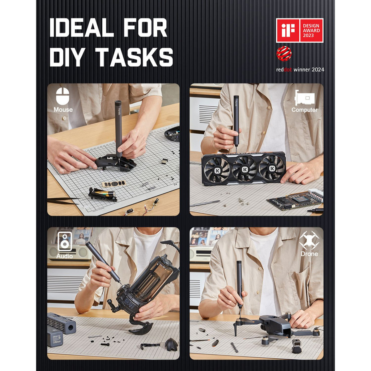 مجهز بعزم دوران عالٍ يبلغ 0.2 نيوتن متر وعزم دوران منخفض يبلغ 0.05 نيوتن متر، بالإضافة إلى عزم دوران يدوي يبلغ 3 نيوتن متر، يوفر هذا المفك الكهربائي الدقيق قوى عزم دوران دقيقة لاحتياجات عملك اليدوي. مثالي للهواتف المحمولة والساعات والأساور الإلكترونية والكاميرات والأدوات الدقيقة وما إلى ذلك. غير مناسب لتجميع الكمبيوتر الشخصي.