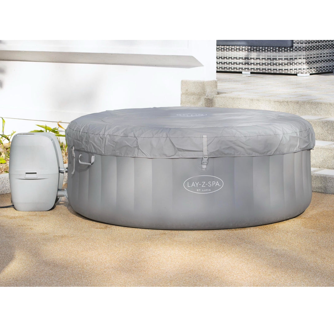 المحتويات: سبا واحد، غطاء مسبح واحد، مضخة سبا واحدة، خرطوشة فلتر (VI)، موزع ChemConnect واحد، رقعة إصلاح، نظام AirJet