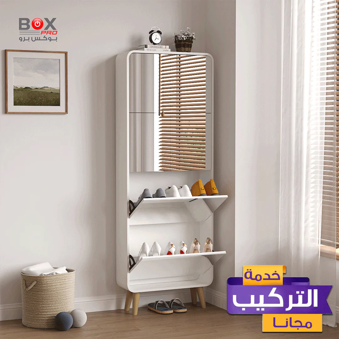 خزانة أحذية أربع أدراج قابلة للفتح مع مرآة