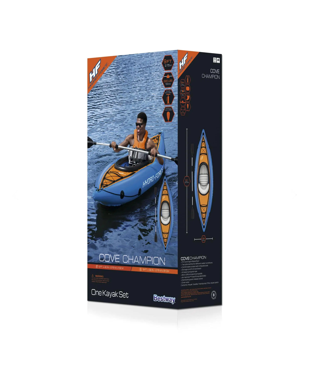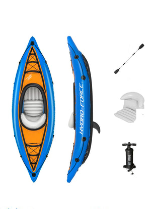 قارب كاياك واحد، مجداف واحد، مضخة يدوية Air Hammer™ واحدة، زعنفتان، رقعة إصلاح واحدة.