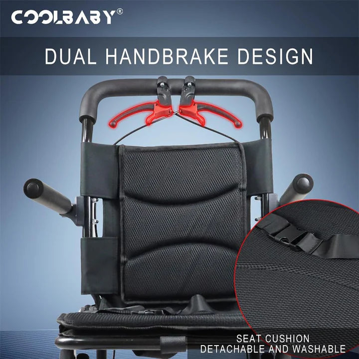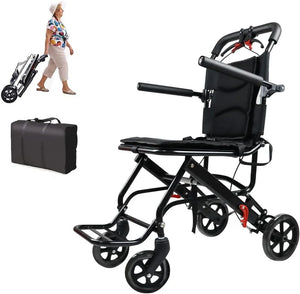 كرسي متحرك خفيف الوزن قابل للطي، مع فرامل، حزام امان، كرسي متحرك للبالغين والأطفال، يشمل حقيبة حمل