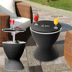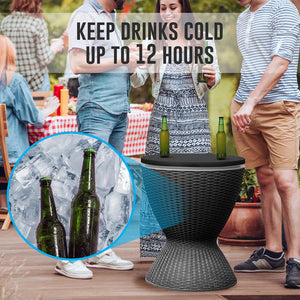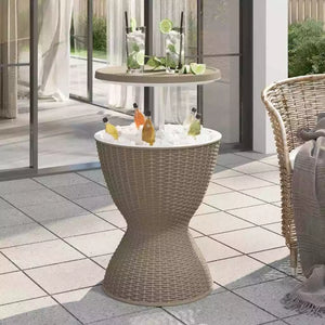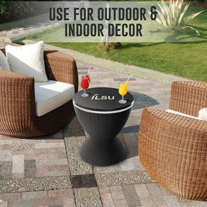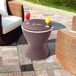 طاولة بار باردة من إيلسو للاستخدام الخارجي للحديقة والفناء وحمام السباحة ، تعمل على حفظ المشروبات الباردة مع الثلج بسعة 8 جالون ( 30 لتر )، اثاث الفناء وطاولة جانبية لحوض الاستحمام الساخن , مقاوم لجميع الاحوال الجوية .