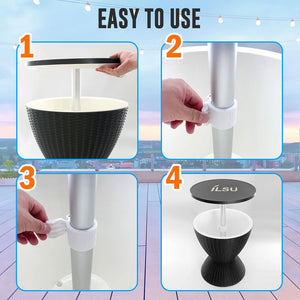 • سهل الاستخدام: يتميز بتجميع سريع وسهل، فقط تحتاج إلى رفع الغطاء وإدارة مقبض القفل لتأمين سطح الطاولة. كما أنه يحتوي على فتحة تصريف مدمجة، مما يوفر لك الجهد لتنظيفه ويوفر لك الراحة لتصريف مشروبات المياه أو الثلج المتبقي