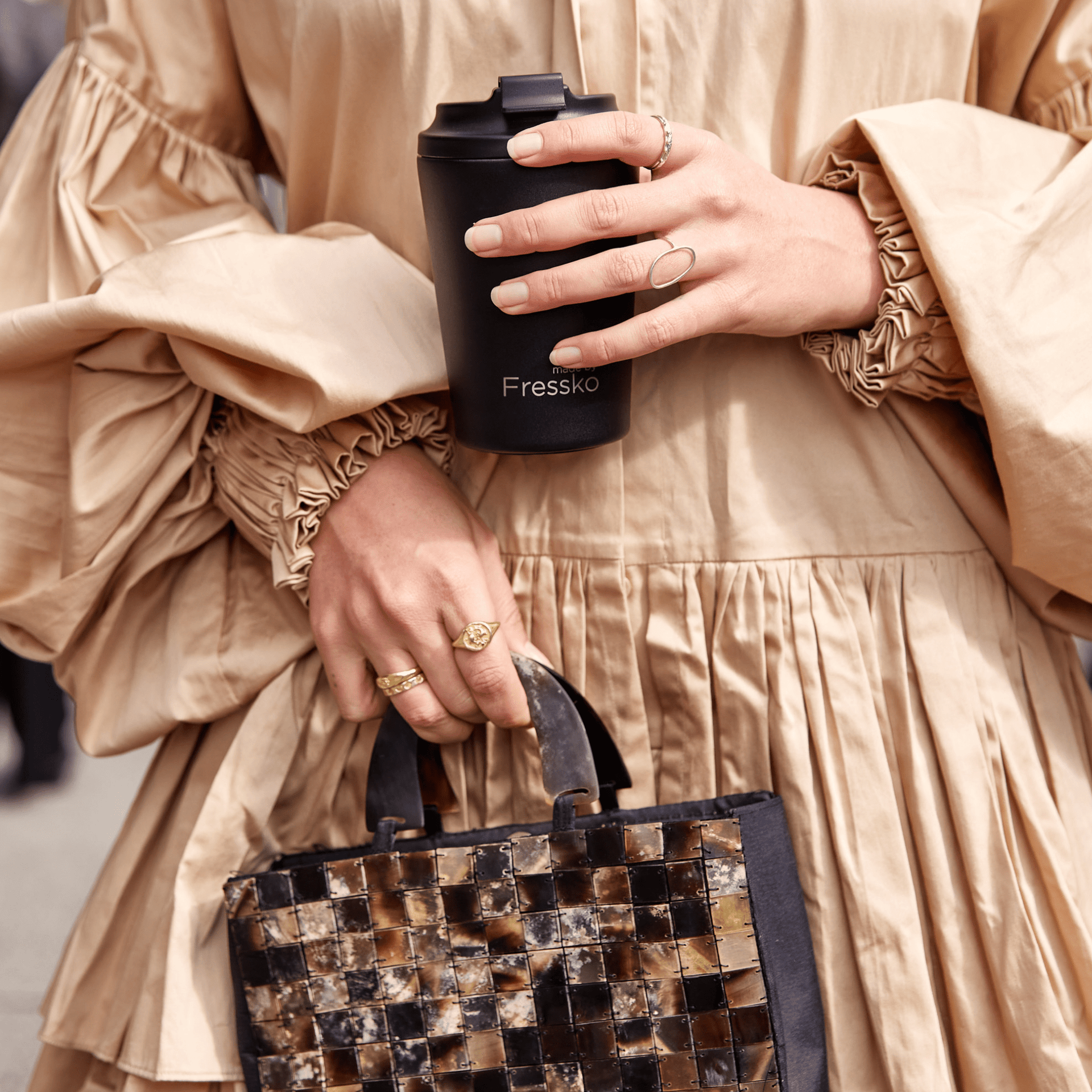 غالباً ما يتم تقليده ولكن لا يتم نسخه أبداً، كوب القهوة الأصلي المشهور عالمياً من فريسكو مقدر له أن يصبح إضافة موثوقة وأنيقة لحملها اليومي. قل لا للنفايات المفرطة ونعم للشرب بشكل أكثر استدامة اليوم وغداً وإلى الأبد.