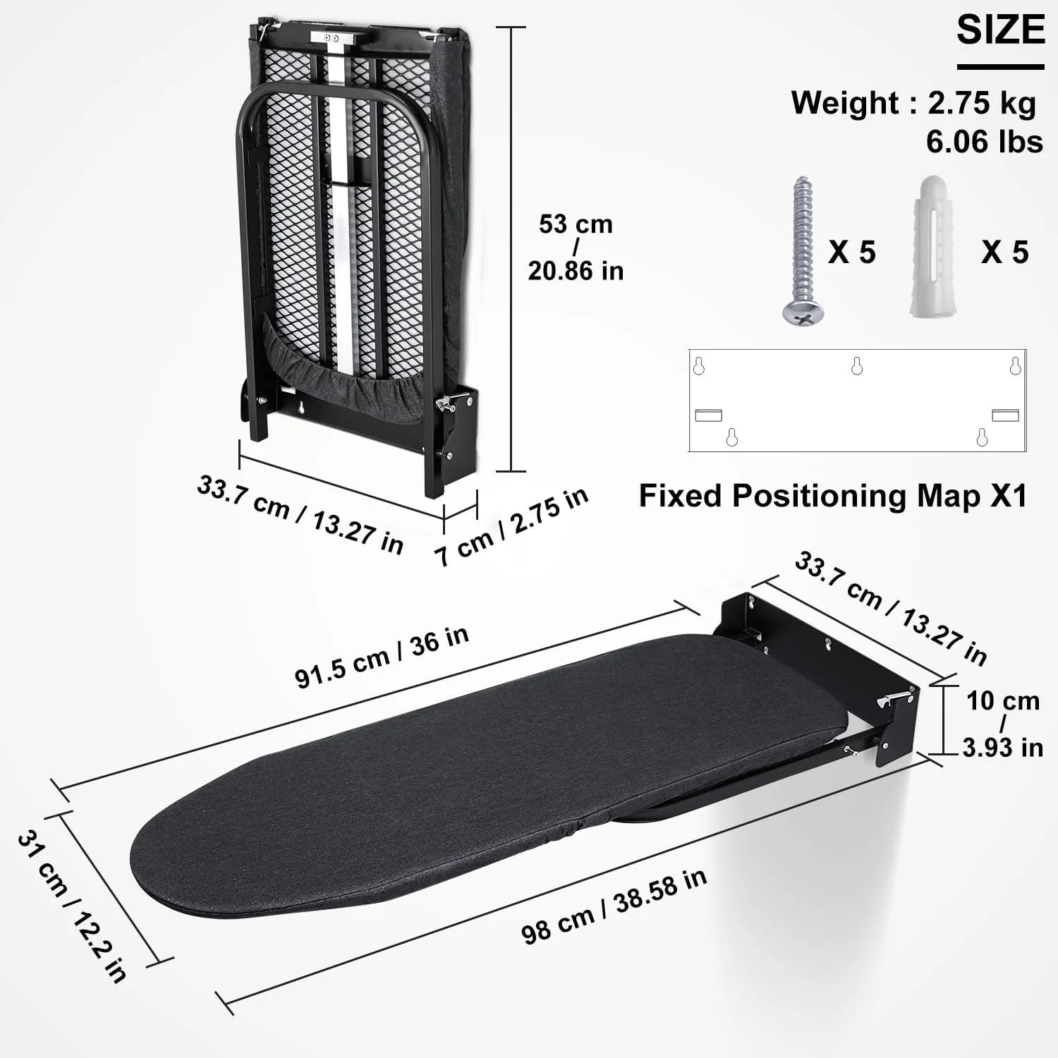 • 【تستخدم على نطاق واسع】طاولة الكي سهلة التركيب وموفرة للمساحة، مما يجعلها مثالية لغرف الغسيل وغرف النوم والشقق، تلبي احتياجاتك دون عناء حتى في الأماكن