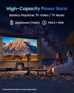 قم بالتوصيل ببنك طاقة 65W Type-C أو بطارية ترايبود جيه إم جو (تُباع بشكل منفصل) لمدة تصل إلى 3 ساعات من الفيديو أو 7 ساعات من الموسيقى أثناء التنقل.