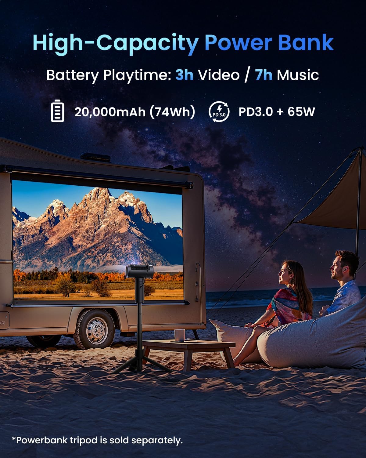 يدمج بيكو بلاي بروجيكتور صغير، ومكبر صوت بلوتوث غامر، وإضاءة محيطة ديناميكية (تتطلب فلتر بصري) لضبط الحالة المزاجية للأفلام أو الحفلات أو جلسات الاسترخاء على الفور.