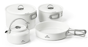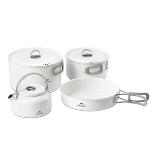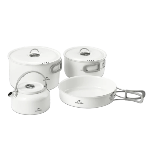 طقم أواني الطهي غير اللاصقة من السيراميك من نايتشرهايك (الموديل: CNK2450CF013-4-7P) هو مجموعة أواني طهي للتخييم فاخرة مصممة لعشاق الهواء الطلق الذين يقدرون المتانة والكفاءة والراحة. تتضمن هذه المجموعة لـ 4-7 أشخاص قدراً سعة 3 لتر، وقدراً سعة 1.7 لتر، ومقلاة مقاس 7.5 بوصة، وغلاية سعة 0.8 لتر، مما يجعلها مثالية للتخييم الجماعي، النزهات، أو النزهات العائلية.